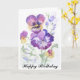 Watercolor purple pansies wish a happy birthday. Change text to suit your needs and ready to add text inside