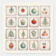 Cute watercolor line art, little squares filled with simple doodly xmas, ornaments and decorations, in christmas colours. Cartoon elements in different variants, stockings and bubble ornaments, Christmas wreaths in soft colours