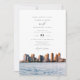 This wedding invitation features a watercolor painting of Long Island New York Waterline Skyline. Easily edit *most* wording to meet your event needs. Change the background colour and add your own photo to the backside if you like.