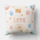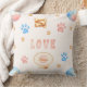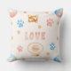 Watercolor "LOVE" Design with Dog Paw Prints Cushion