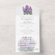 Customisable Watercolor Lupine and Mountain all-in-one wedding invitation. The invitation features exquisite watercolor artwork of lovely purple lupine flowers. The design exudes elegance, and It handles your wedding announcement, invitation, RSVP, and entree requests.