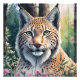 A feline portrait capturing the untamed elegance of a lynx amidst a lush, dreamy forest setting. With a touch of femininity, this unique wild cat watercolor painting comes alive with exquisite floral accents, delicately intertwining with the lynx's graceful presence.