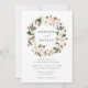 Elegant spring floral wedding invitation featuring your names encircled by a wreath of white magnolias, blush pink roses, cotton blooms & green leaves. Add your wedding details below for an invitation that is perfect for spring and summer weddings.