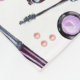 This design features assorted beauty care tools in a soft watercolor pattern.