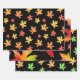 Watercolor Maple Leaf Patterns Black Background Wrapping Paper Sheet