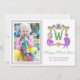 Watercolor Mardi Gras Monogram Crest Photo Holiday Card