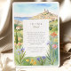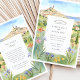 Celebrate your wedding with the charm and vibrancy of southern France using this watercolor Marseille wedding invitation. Featuring a sunlit view of Marseille's iconic hilltop village and domed church architecture, the hand-painted scene is framed by colourful wildflowers and soft, rolling hills that lead to the sea. The elegant composition captures the coastal romance and Provençal beauty of the Mediterranean region. Perfect for destination weddings in Marseille or France-inspired events, this invitation is customisable with your personal details.