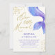 Watercolor Mermaid Tail Gold Glitter Birthday Party Invitation.