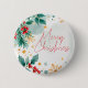 Watercolor Merry Christmas Button – Holiday Leaves & Berries Pin for Coats or Gifts