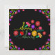 Watercolor Mexican flowers Fiesta design with bright yellow, purple and pink flowers and green leaves on a black background.