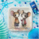 Two adorable mice stand side by side, dressed in charming, colourful outfits with large, expressive eyes