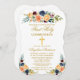 Modern Elegant Watercolor Floral and Greenery First Holy Communion Invitation includes golden yellow, peach, blue and burgundy flowers and roses, botanical greenery and gold script. Gold Cross.