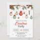 Our invitation design showcases a delicate watercolor Christmas branch adorned with holly, pine needles, and vibrant red berries. Gracefully hanging from the branch are charming ornaments—striped and patterned baubles, tiny stars, and a festive holly sprig—each suspended by fine string against a clean white background. This elegant, handcrafted look adds a warm, magical touch to any holiday celebration, making the invitation feel truly special and memorable.