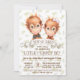 Monkey gender reveal invitations with adorable watercolor baby boy and baby girl orangutan monkeys on a green leaf background. These monkey gender reveal invitations are easily customised for your event by simply adding your details. You can also move or remove the bow tie.