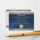 Design features a watercolor mountain scene on the front bottom on a blue satin background and trimmed with silver ribbon on the front.  Details for more information on the front and QR code on the back.  Designed to coordinate with the Watercolor Mountain Wedding Invitation Collection. To change details, click «Personalise». To move the text or change the text size, font, or colour click «Click to customise further»