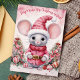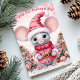 Send big Christmas wishes with this charming card featuring a cute watercolor mouse dressed as Santa, surrounded by festive ornaments. The whimsical design and sweet message make this card perfect for spreading holiday joy to friends and family.
