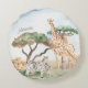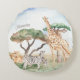 Add an adorable custom safari theme to the bedroom or nursery of your little girl or boy with this pretty watercolor African animal design throw pillow. Pillow has mummy and baby giraffes, zebras, and lions in an African savannah background. There is also a place for a first name (which may be removed per your preference).