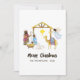 Nativity Christmas greeting card featuring baby Jesus, Mary, a manger, wise men, an angel, Joseph and the Star of Bethlehem.