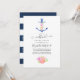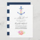 Trendy navy and white long distance virtual wedding invitation featuring a watercolor floral anchor, flowers and navy stripes on the reverse.