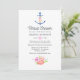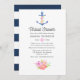 Trendy navy blue and white nautical virtual long distance bridal shower invitation featuring a watercolor floral anchor, flowers and navy stripes on the reverse.