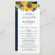 Watercolor Navy Blue Sunflower Rustic Wedding Program