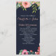 Romantic Flowers in shades of peach, blush and coral on navy blue back tea length wedding programs