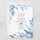 Watercolor Navy Indigo Leaves Wedding Invitation
