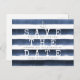 Watercolor stripes in dark navy blue with silver nautical anchor design, simple and chic, Great save the date card for beach wedding, nautical theme wedding, destination wedding, and summer wedding party.