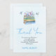 Watercolor New Chapter baby boy shower Thank You card. A thoughtful and artistic way to express appreciation, this baby shower thank-you card is ideal for thanking friends and family who shared in the joy of welcoming a baby boy. The design features graceful blue script that says “Thank You,” accompanied by a delicate stack of books tied with a rope, beautifully embellished with pastel flowers and whimsical butterflies. The soft watercolor background in a soothing pale blue tone adds elegance, making this card a meaningful keepsake for loved ones.