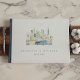 Beautiful watercolor painted New York City skyline scene paired with elegant, modern-minimalist fonts to welcome your wedding guests.