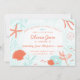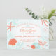 An illustrated underwater scene in watercolor with cute little fish and vibrant sea shells. A perfect gender-neutral birthday invitation in coral/orange and teal colours.