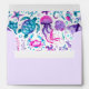 This design features a jellyfish on the front, on the back flap is space to add your return address and on the inside of the envelope is a pattern of watercolor ocean creatures such as sea turtles, sea horses, starfish, jellyfish, crabs, a stingray, sea shells and coral for an under the sea/ mermaid summer birthday party in a colour palette of pinks, turquoise, green and purple. All the illustrations are hand painted in watercolor. See the whole matching collection.