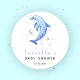 Watercolor ocean dolphin baby shower classic round sticker