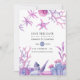 Whimsy pink and blue ocean themed beach wedding invitations featuring sea ferns, seaweed, coral, shells and starfish designed to be quickly and easily customised to your event specifics.