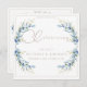 Hand-painted watercolor olive branches adorn this delicate and loving celebration of life invitation in soft aqua, blue and gold