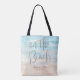 Celebrate your seaside wedding with this double-sided tote bag featuring a calming watercolor design in soft shades of blue and tan. The slightly abstract coastal artwork captures the relaxed, natural feel of the ocean meeting the shore, creating a serene, beach-inspired look.