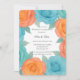 A digital illustration of a romantic bouquet of roses in pastel colors. The arrangement features six large roses in orange, and teal, with each rose rendered in a detailed spiral pattern. The roses are accompanied by delicate green leaves and stems. A light blue satin ribbon with a flowing bow ties the stems together at the base. The bouquet is set against a pure white background, creating a clean, elegant composition. The roses are arranged in a circular pattern, with the peach-orange colored roses positioned at the outer edges and the blue and teal roses interspersed throughout. The illustration has a soft, watercolor-like quality with subtle shading and highlights on each petal. The leaves are rendered in various shades of sage green with delicate veining details. The stems are thin and green, emerging from beneath the ribbon bow.
