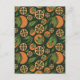 Beautiful Watercolor Orange Green Fruit Patterned Fruit Post Card that is a citrus theme with a gorgeous botanical background. Buy Today!