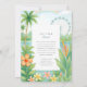 Set the scene for your tropical destination wedding with this watercolor Orlando invitation featuring lush palm trees, vibrant florals, and serene water views.