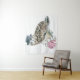 This design features a watercolor portrait of an owl posing in a hat and pink roses.