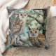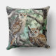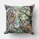 This throw pillow features a watercolor image of owls sitting in large trees, surrounded by branches and green leaves. Their brown and grey feathers look beautiful as their orange eyes assess the scenery around them. It's the perfect pillow for anyone who loves these majestic creatures.