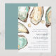 Planning a seafood themed or oyster roast rehearsal dinner? Coastal chic rehearsal dinner invitation features soft cream and aqua watercolor oyster and pearl illustrations, with your rehearsal dinner details in classic navy blue. Perfect for beach themed, summer, or nautical rehearsals and celebrations.