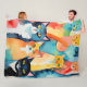Watercolor Painted Colourful Cat Collage Fleece Blanket
