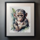 Watercolor Painting of Baby Chimpanzee Leaves Nursery The aspect ratio is 5:4. It was designed to be printed as 5"×4", 10"x8", 20"×16", 30"x24"