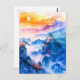Watercolor painting of sundown chinese mountain postcard