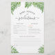 A cute baby advice & predictions card featuring a watercolor palm leaves frame. The back of the design is decorated with a green watercolor wash to perfectly match the front of the design. There is space for the guests to write their birth predictions, resemblance predictions, and advice for the new parents. This activity card was made to match our Safari Animals Wild One Baby Shower collection. View the collection linked on this page to see the full set. Feel free to message me with any questions, I'll be happy to help!