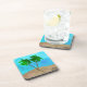 Watercolor Palm Tree Beach Scene Collage Coaster