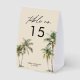 Watercolor Palm Tree Wedding Table Number | Elegant Coastal Destination Table Card