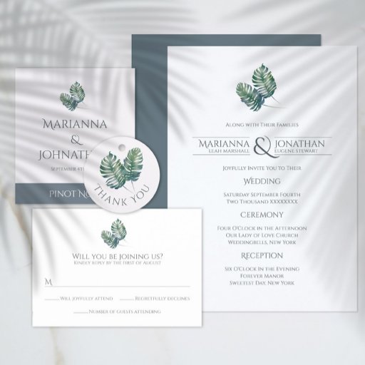 Watercolor Palms and Slate Wedding Invitation