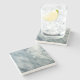 The coasters are gorgeous, a quality feel and heavy weight. They look like a precious archeological find. A rustic stone juxtaposed with a modern floral black and white print. I like the way the print goes slightly imperfect on the cut stone edges giving them a kind-of natural beauty.